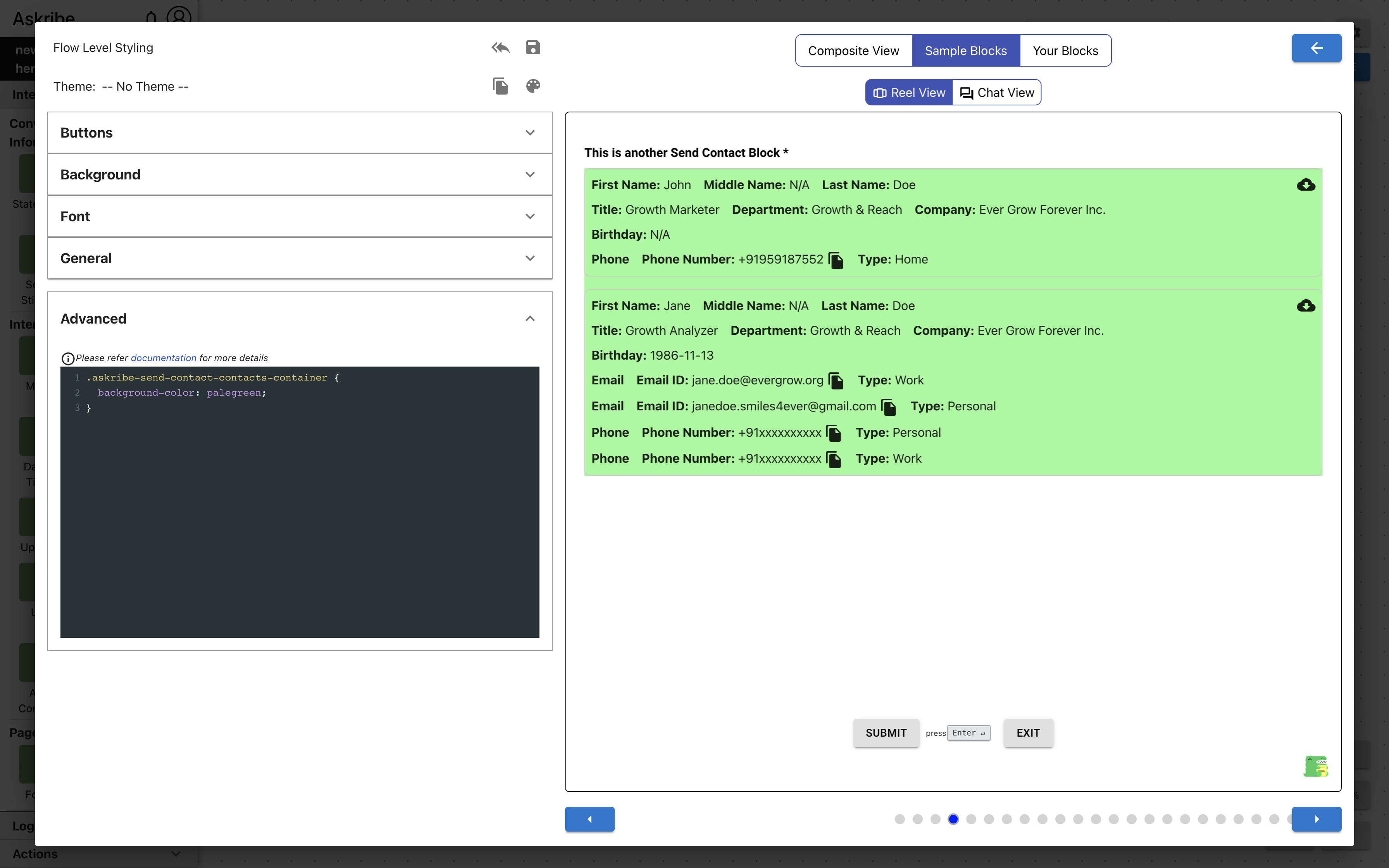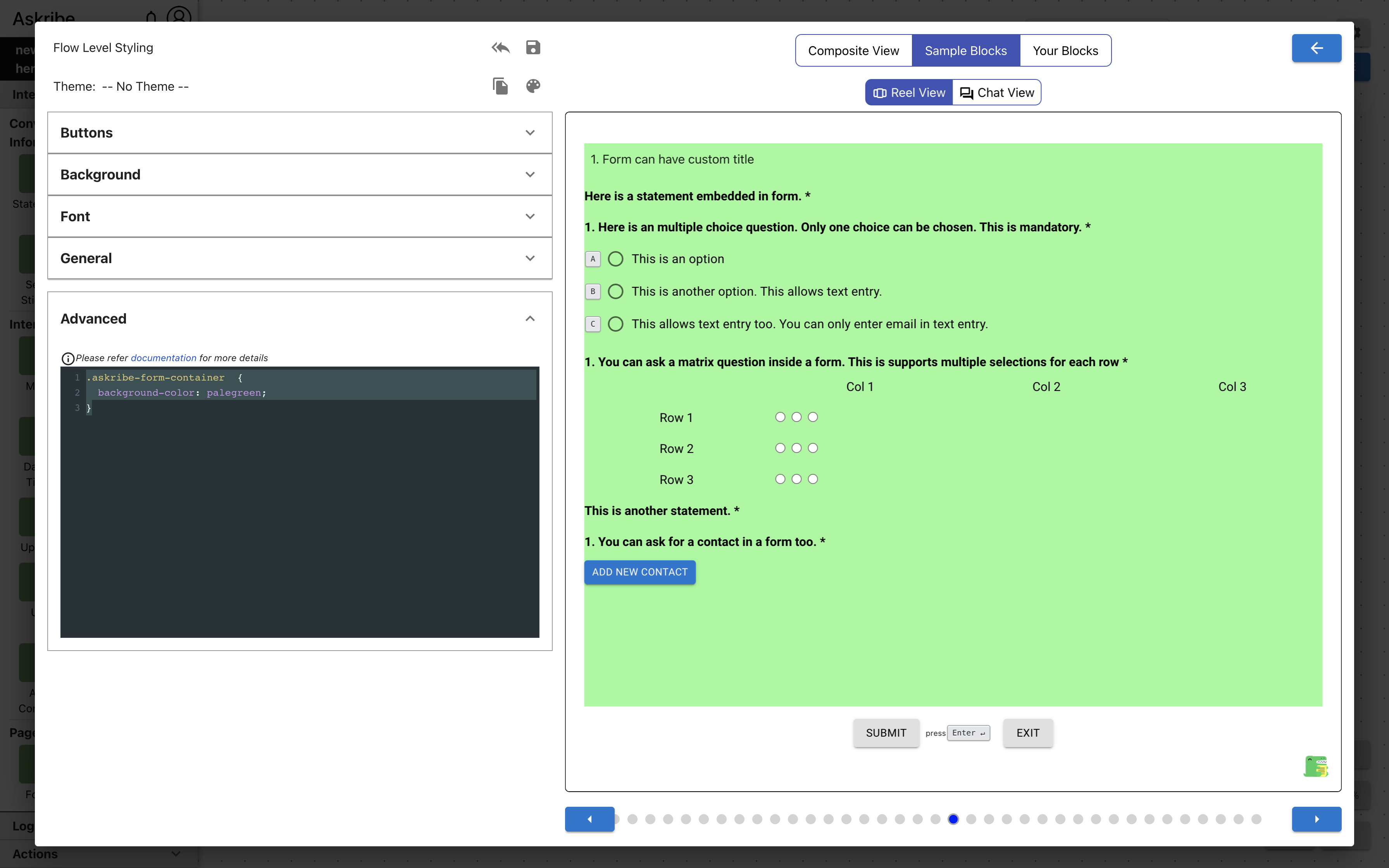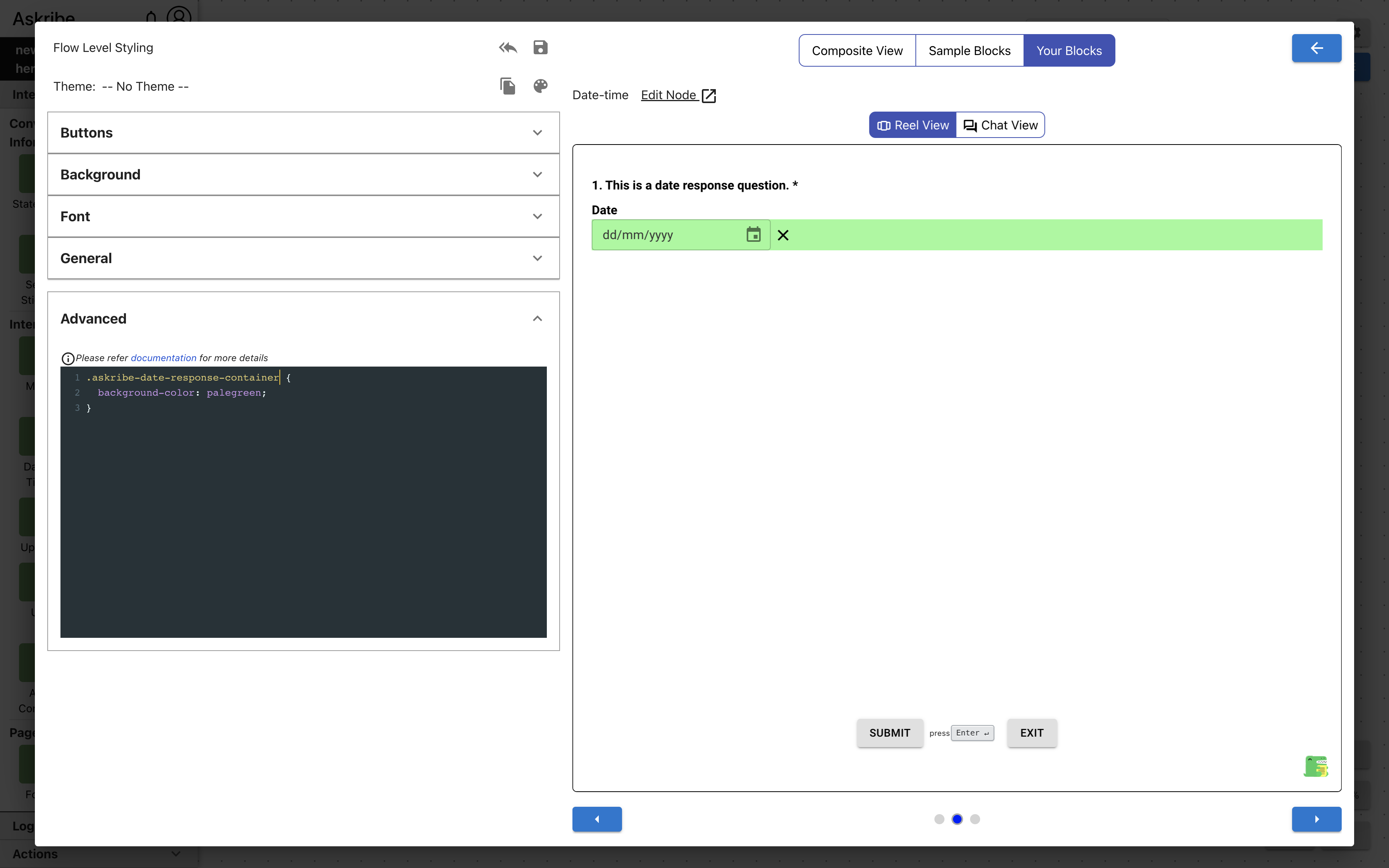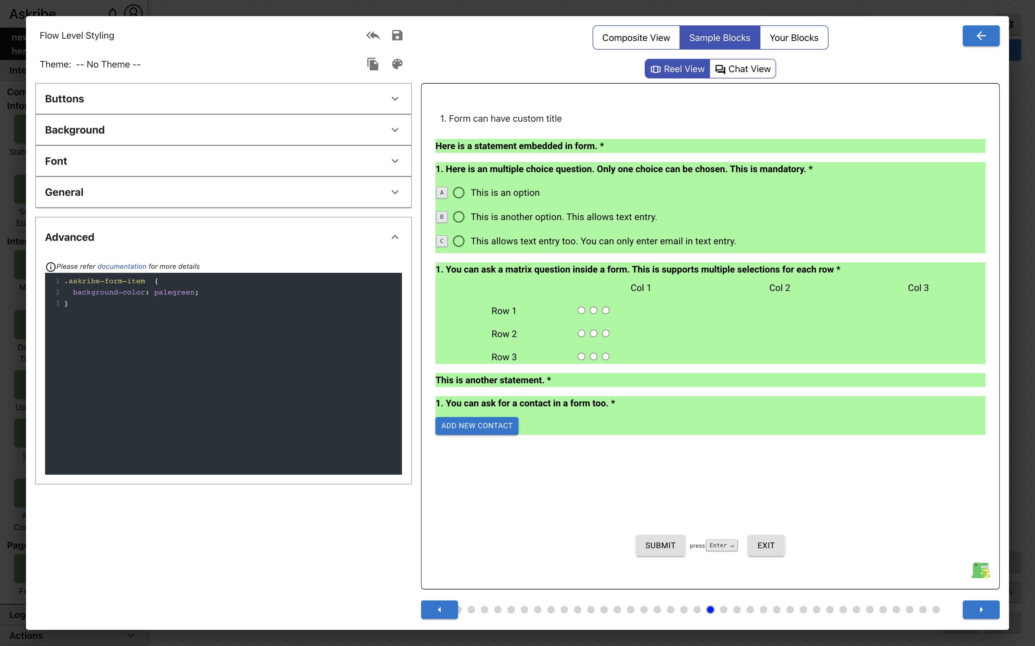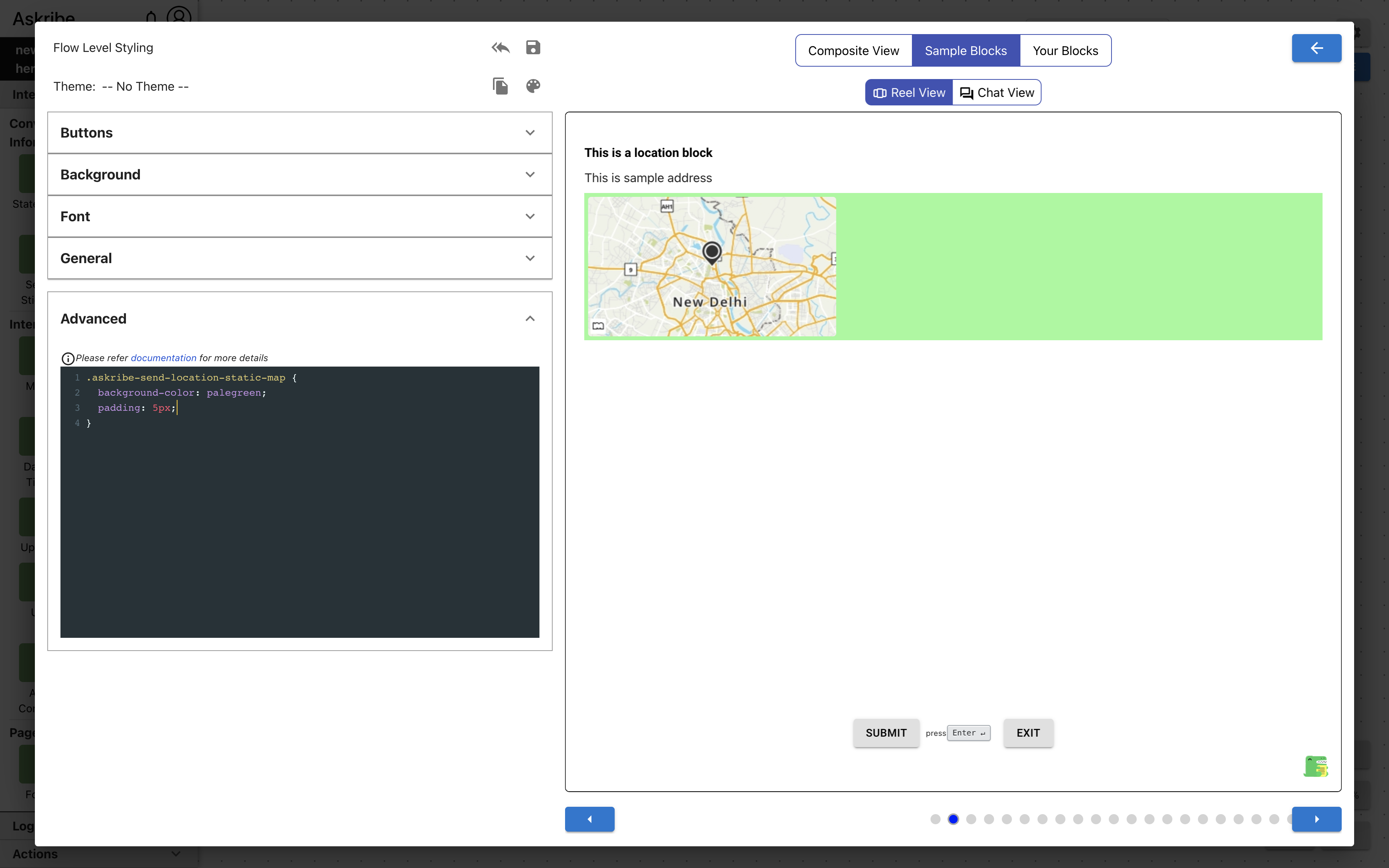 Advanced CSS is a powerful way to add more advanced and nuanced customization to Askribe consumer using SCSS code. We expose classes that are used in consumer to enable styling customization using Advanced CSS. The classes exposed are as follows. These are the classes exposed in Reel View.